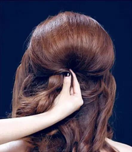 6. 打造层次感:用梳子将头顶区域留出的头发向后梳理,用发夹固定。