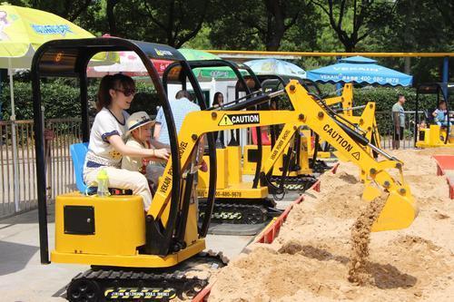 更让人惊讶的是,小明竟然还能用挖土机挖土呢!他小心翼翼地控制着挖土机的铲子,慢慢地挖掘着地面。虽然挖出来的土并不多,但小明的脸上却洋溢着成就感。看来,这个小家伙不仅会玩,还会干一些实实在在的事情呢!